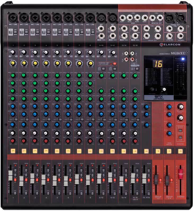 Elarcon MG16XU – это 16-канальный аналоговый микшер с USB Audio и эффектами.