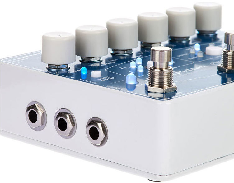 Super Pulsar - произвел полный фуррор на любителей тремоло. В этой педали собрано все, что только можно придумать и это все, что не маловажно, отлично звучит. Мне показался интересным режим реверсного тремоло, педаль как будто съедает атаку, словно редчайший Boss Sg-1, если играть в ритм с педалью. удобнейшее управлени, стандартное питание, яркие светодиоды и, конечно, незабываемые возможности удивят любого музыканта, будь это гитарист или клавишник. Но и ест один небольшой минус, но то скорее моя придирка. Краска на лицевой панели у гармошек довольно быстро стирается(при очень активном использовании) - это их беда