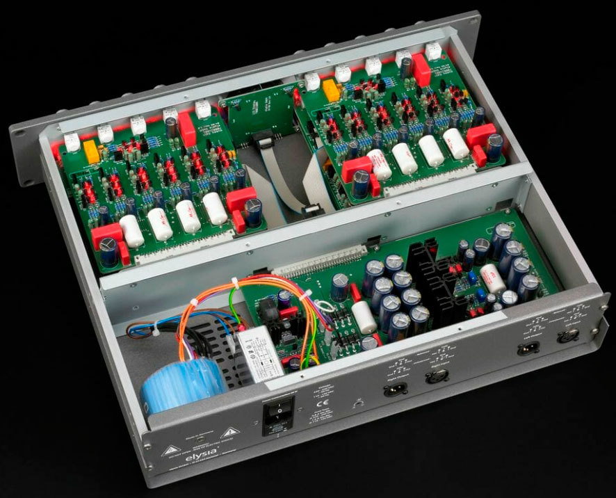 Схемотехника основана на 100% дискретной аналоговой технологии. Вся обработка сигнала осуществляется на единичных транзисторах, и даже блок питания эквалайзера обладает полностью дискретной аналоговой схемой.