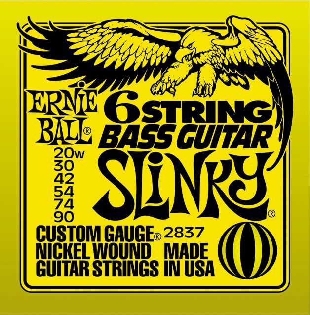 Ernie Ball 2837 комплект струн для 6-струнной бас-гитары Nickel Bass SS Slinky 6. Калибр струн: 20w-30-42-54-4-90