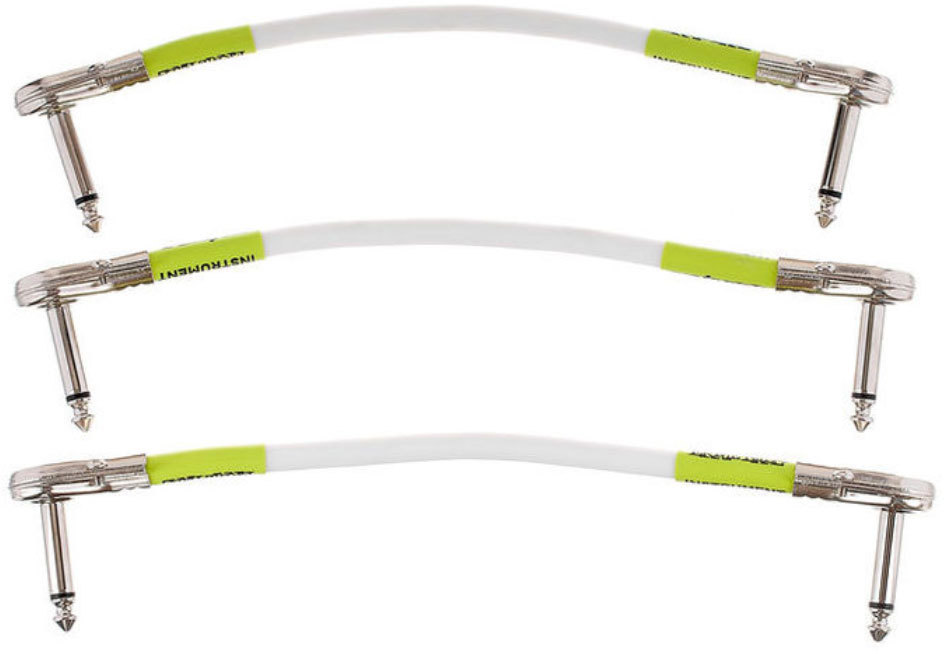Ernie Ball 6052 кабель инструментальный (гитарный), прямой + угловой джеки, длина 15 см, комплект 3 шт. Цвет - белый.