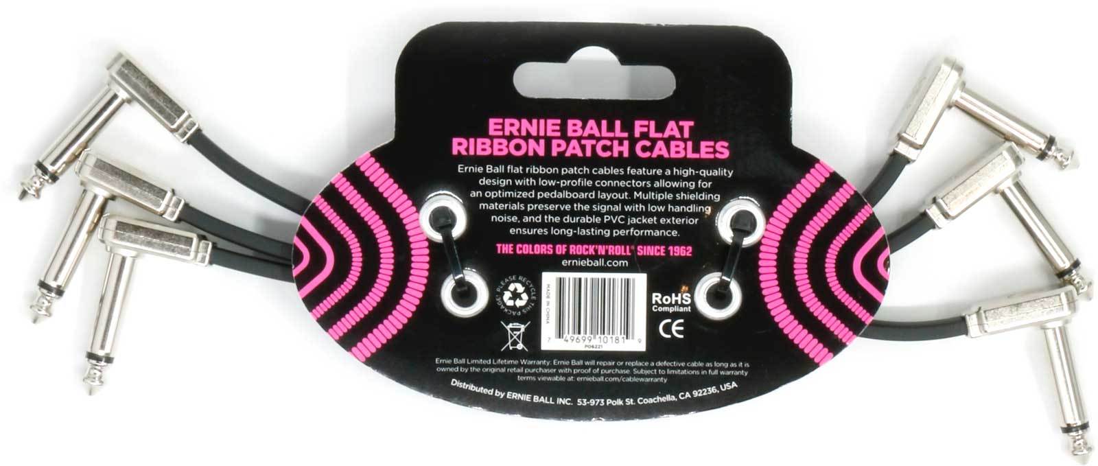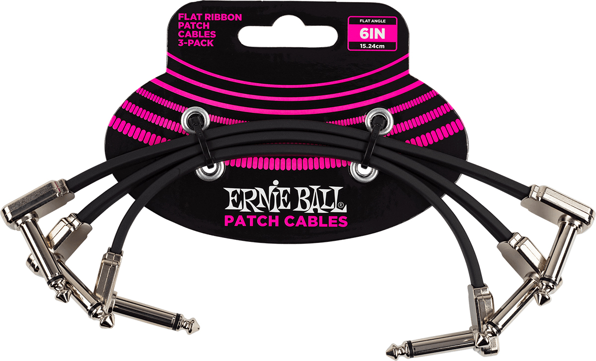 Ernie Ball 6221 набор соединительных кабелей 3 шт., плоский, 15 см, угловой джек/угловой джек, чёрный