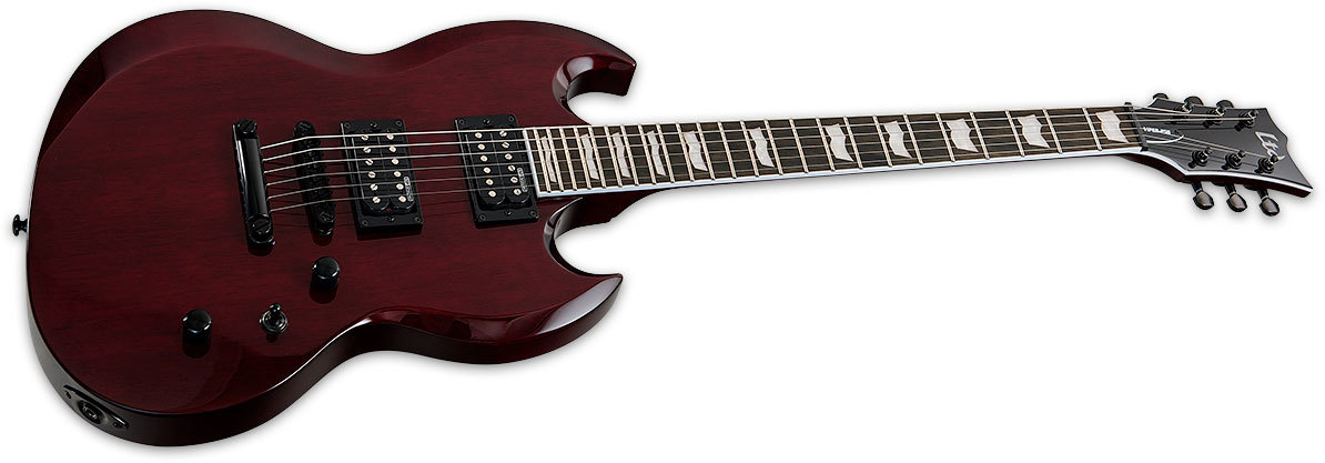 Что в первую очередь отличает гитары LTD серии Viper — разумеется, крутой SG-подобный внешний вид, который отлично смотрится в таких музыкальных направлениях, как метал, рок, блюз и др. Модель LTD Viper-256 сочетает в себе традиционный корпус из красного дерева и осовремененный внешний вид за счет изящных скосов и черной фурнитуры. При своей невысокой цене, эта модель имеет черты дорогих гитар: конструкция вклеенного грифа, мощные хамбакеры с функцией "отсечки", 3-кусковый гриф удобного профиля Thin U с окантовкой.
