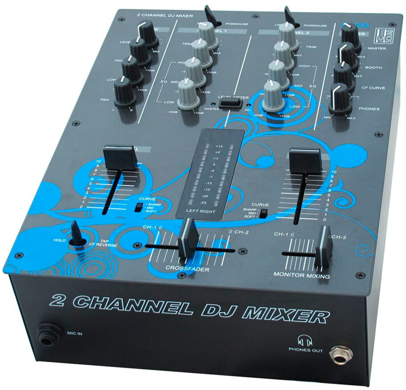 Несмотря на довольно скромную по нынешним меркам стоимость - вполне приличный ди-джейский пульт для начального и даже среднего уровней. Микшер рассчитан на два канала с возможностью подключения CD-плееров или виниловых проигрывателей. На каждом канале - трёхполосный эквалайзер. Помимо этого, есть микрофонный вход с возможностью регулировки уровня, низких и высоких частот, а также панорамы сигнала. Микшер выполнен в довольно добротном металлическим корпусе и имеет вполне приличное качество сигнала, что делает его вполне неплохим решением при ограниченном бюджете.