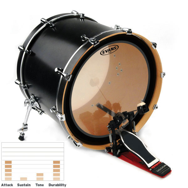 EVANS BD22EMAD2 - пластик 22'' Externally Mounted Ajustable Damping Пластик для бас барабана двойной прозрачный.