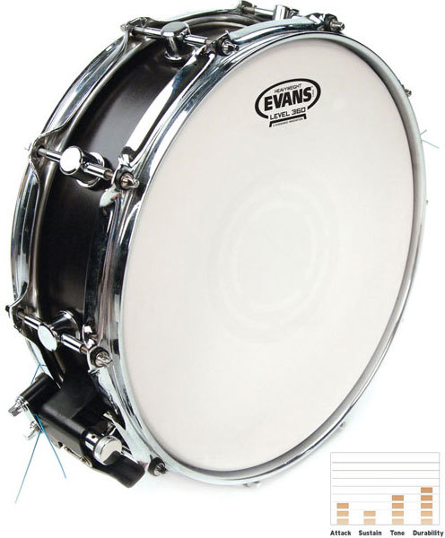 Evans™ Heavyweight - это двухслойный пластик для малого барабана, сочетающий два идентичных слоя толщиной 10 мил, которое обеспечивает невероятную прочность и компрессированную атаку, при этом сохраняя широкий динамический диапазон. Специальная усиливающая наклейка, расположенная в центре с внутренней стороны, способствует сфокусированности звучания и увеличенному сроку службы пластика.