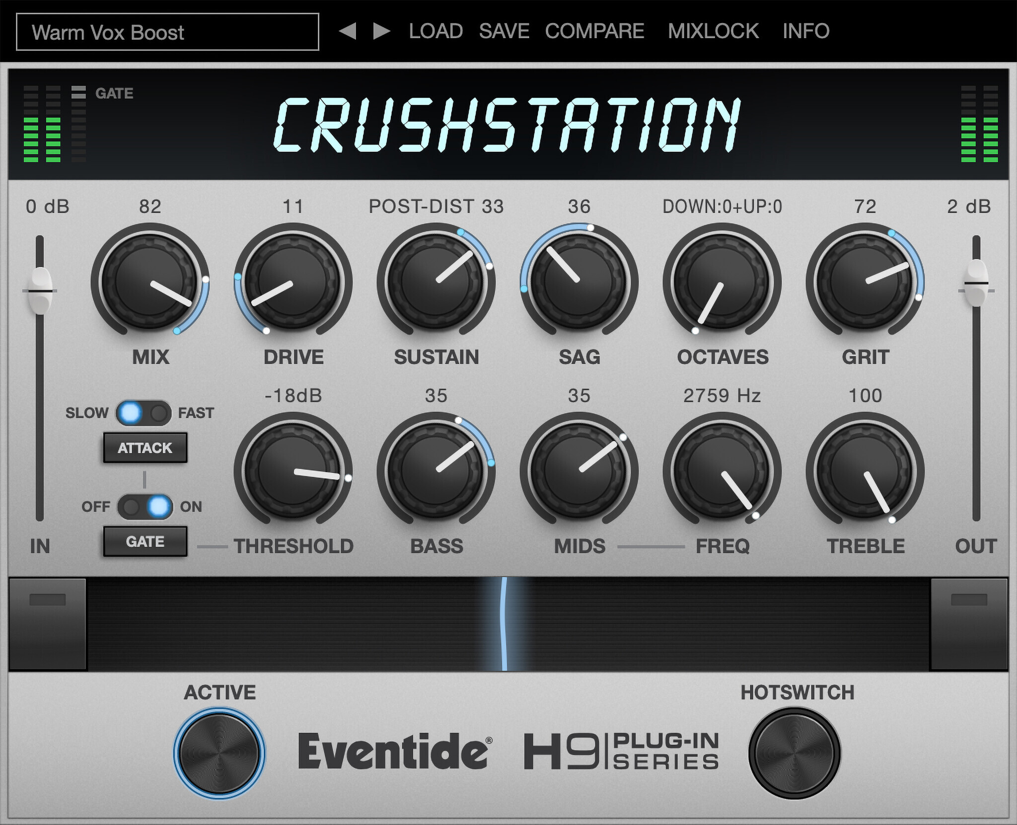 «У CrushStation такой широкий спектр применения, что он просто напрашивается на всеобъемлющий набор пресетов. Мы приложили все усилия, чтобы создать десятки пресетов, охватывающих множество способов его использования», — говорит менеджер по продуктам Eventide, Коллин Беван. — «CrushStation поставляется с тридцатью пятью пресетами, так что вы всегда сможете найти тот, который приблизит вас к желаемому звучанию».