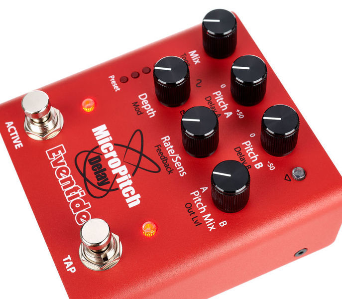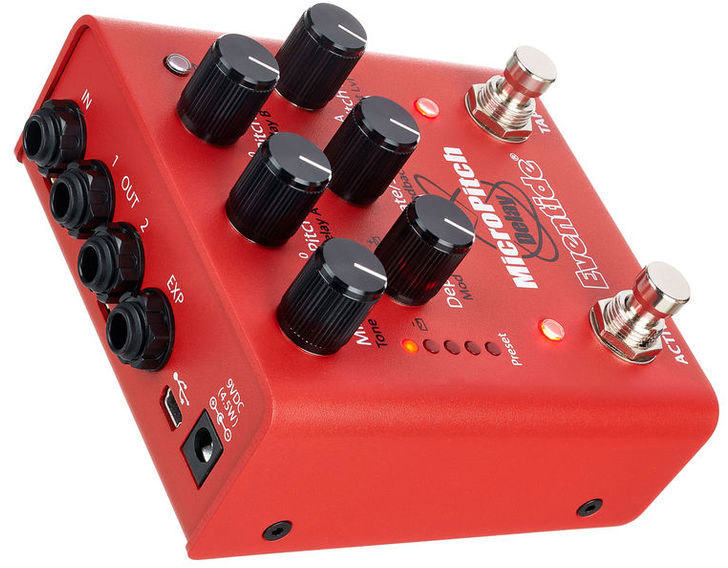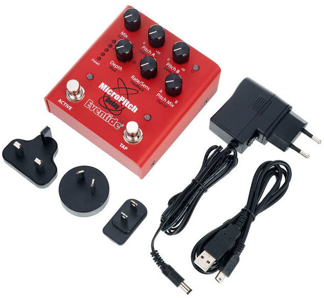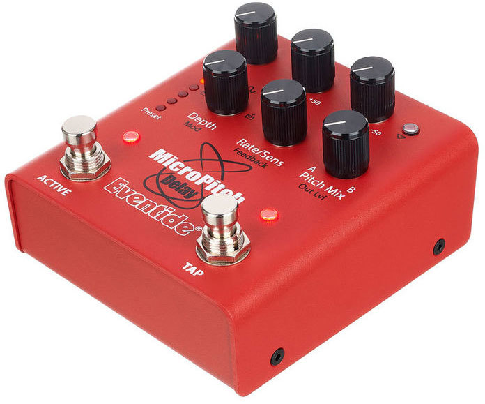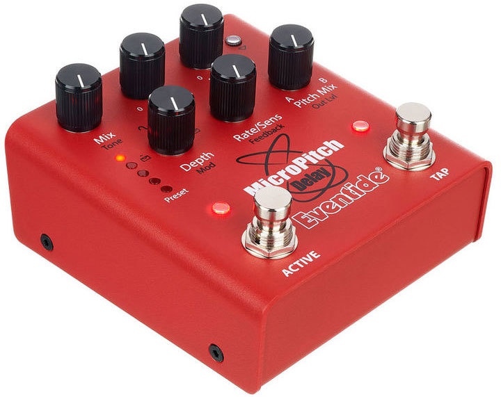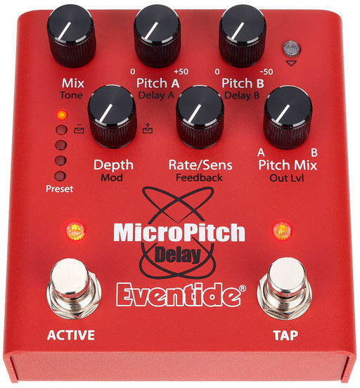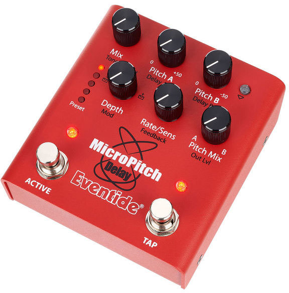 Так каков рецепт педали MicroPitch? Это два уникальных питч-шифтера с высококачественным детюном, модуляцией и дилеем в одном корпусе. Прибор является свежей инкарнацией эффекта, который впервые появился на гармонайзерах H910 и H949, и позже ставший популярным благодаря девайсу H3000. Много лет он использовался режиссерами и саунд-дизайнерами для добавления новых красок привычным звукам. С педалью MicroPitch вы сможете применить мощь легендарного эффекта от Eventide, который сильно повлиял на музыку в эру цифровой звукозаписи.