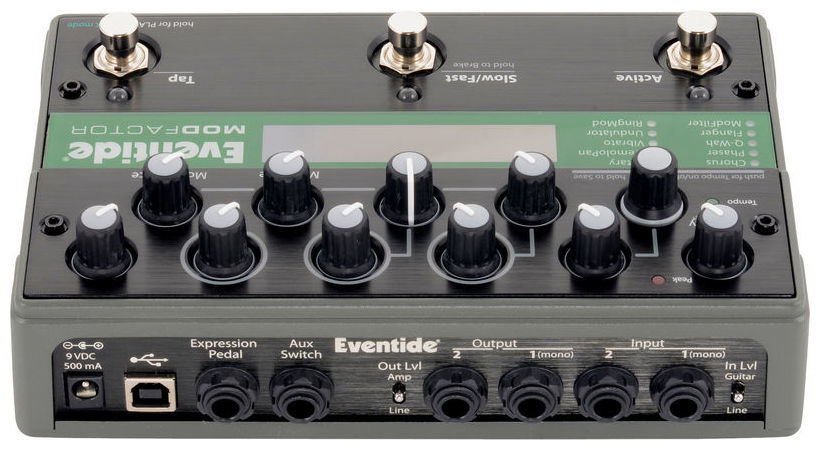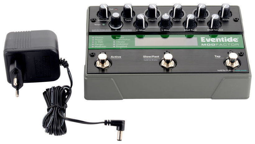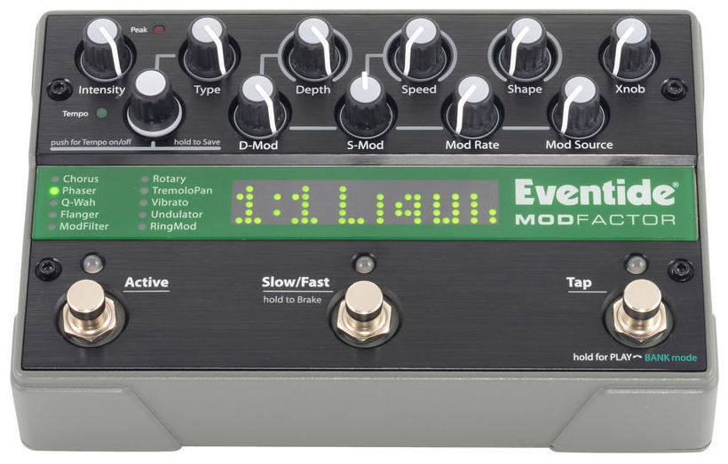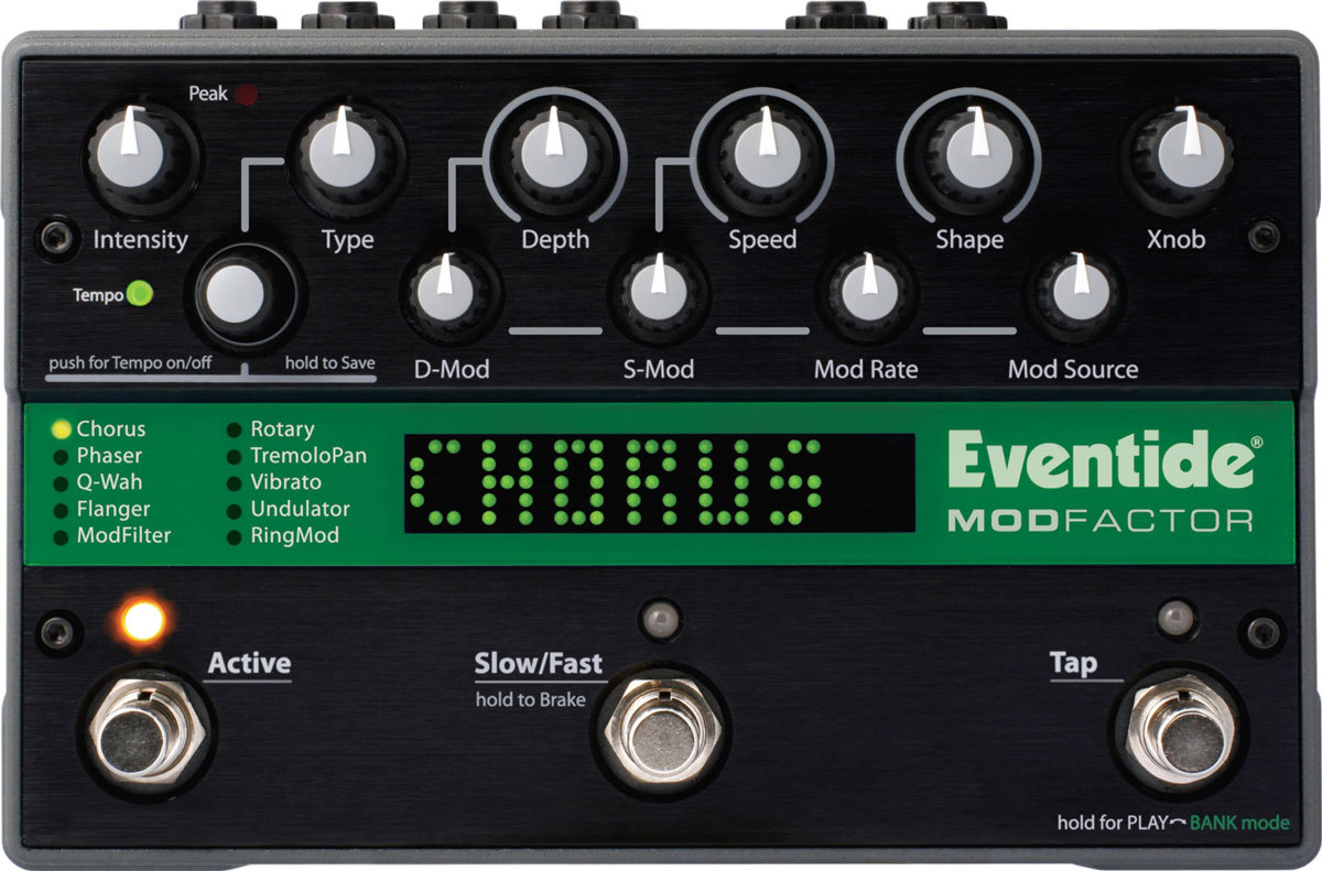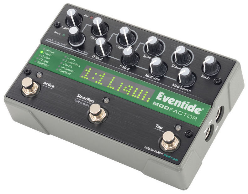 Eventide Modfactor - педаль, продолжающая линейку Factor, и как её старшие родственники, она объединила множество эффектов, ранее доступных только в дорогих рэковых процессорах, в формате небольшой и недорогой педали. Причём без какого бы то ни было снижения качества. Формально Modfactor содержит 32 эффекта модуляции, разделённые на 10 категорий: Chorus, Phaser, Wah, Flanger, ModFilter, Rotary, Tremolo, Vibrato, Undulator и RingMod.
