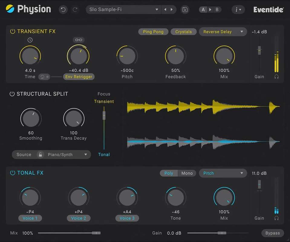 - Обрабатывайте транзиентные и тональные эффекты отдельно, используя улучшенную технологию Structural Split™ от Eventide.