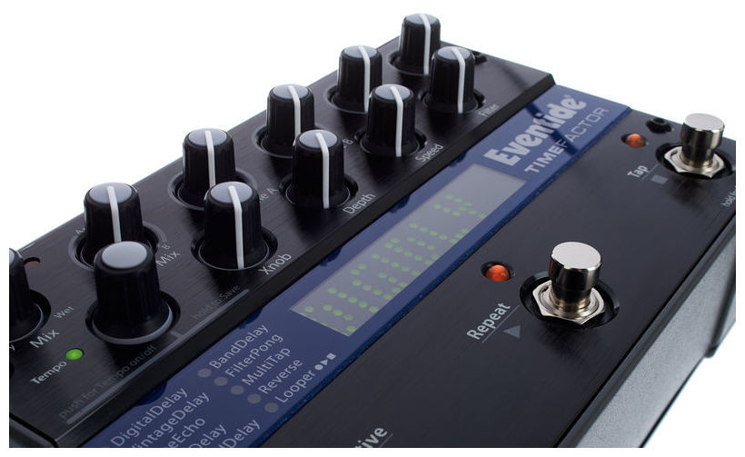 Великолепно звучащий Delay от Eventide, с гибко настраиваемым в реальном времени интерфейсом и возможностью работать в стереорежиме. Абсолютная универсальность этой педали нисколько не влияет на высочайшее качество звучания каждого из эффектов - как и более сложные студийные эффекты от Eventide, эта педаль прекрасно справляется как с имитацией классических аналоговых дилэев, так и с созданием невероятных цифровых эффектов.