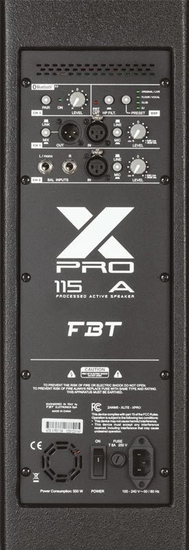 FBT XPRO 115A — активная акустическая система с 15-дюймовым вуфером, раздельным двойным усилением, DSP-предустановками, 3-канальным микшером и Bluetooth.