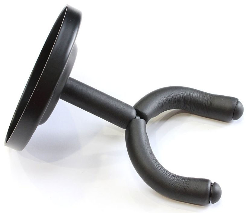 Отличный держатель для гитары. Я купил таких несколько, чтобы удобно разместить все свои гитары на стене и иметь их в простой доступности, если вдруг захочется поиграть на какой-либо из них. Держатель крепится на трех болтах и этого вполне достаточно, чтоб гитара не рухнула на пол. Круто, что на держатель можно повесить не только электрогитару, но и акустику из-за того, что он немного выпирает и более толстый корпус тоже поместится. Держатель имеет мягкую оболочку, так что не стоит волноваться за гриф.
