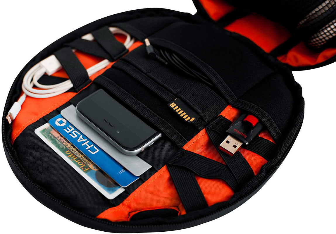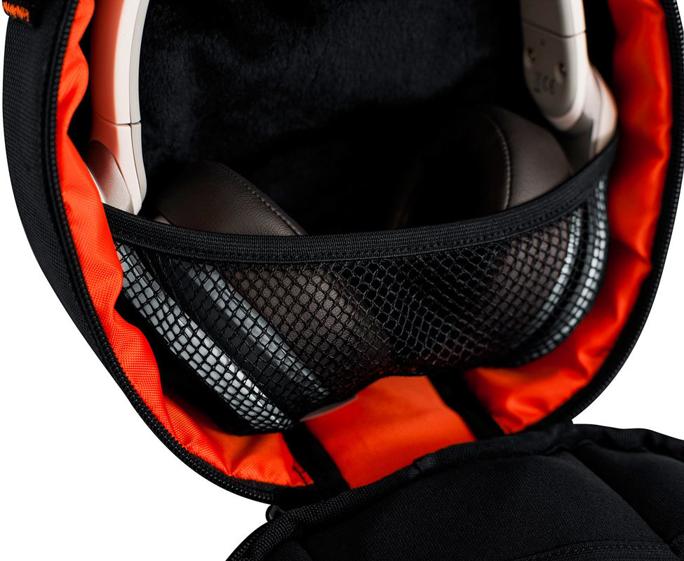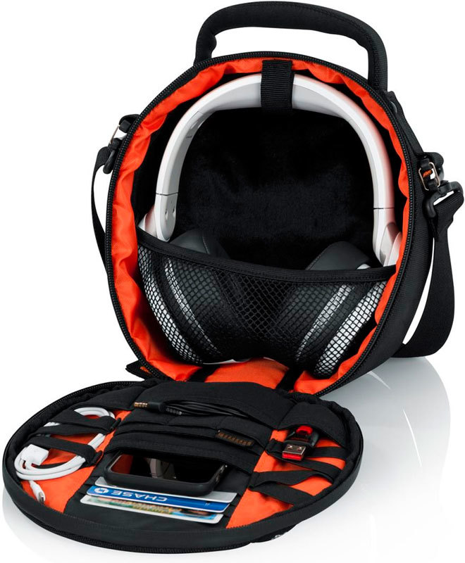 Gator G-CLUB-HEADPHONE - компактная нейлоновая сумка для DJ наушников. Сумка выполнена в черном цвете с оранжевыми вставками на подкладке. На передней панели имеются отсеки для хранения USB-кабеля, флэш-накопители, телефона.