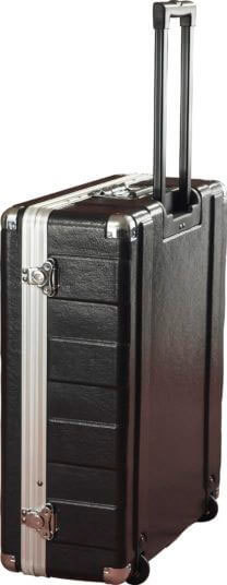 - Пластик высокой прочности, замки, хромированные углы, выдвижная ручка, колеса