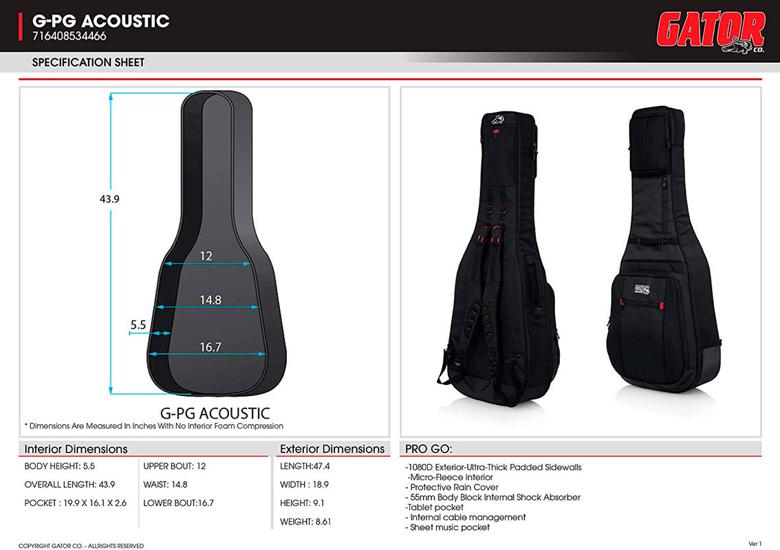Gator G-PG ACOUSTIС Pro-Go Acoustic Guitar Gig Bag 0