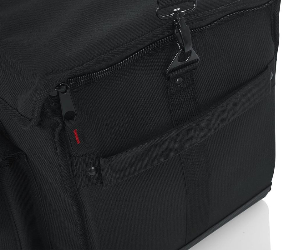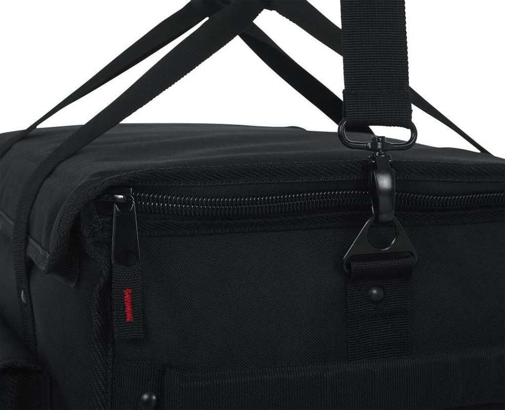 - Большой внешний карман обеспечивает достаточно места для предметов первой необходимости, таких как кабели XLR, шнуры питания и другие аксессуары.