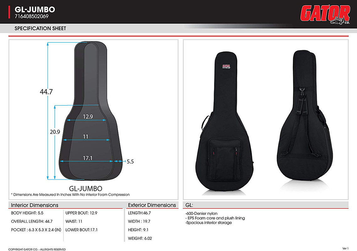 GATOR GL-JUMBO - легкий кейс для гитар типа JUMBO, черная