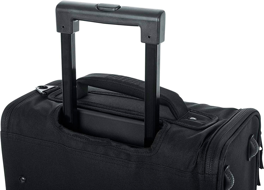 - Выдвижная ручка и встроенные колеса