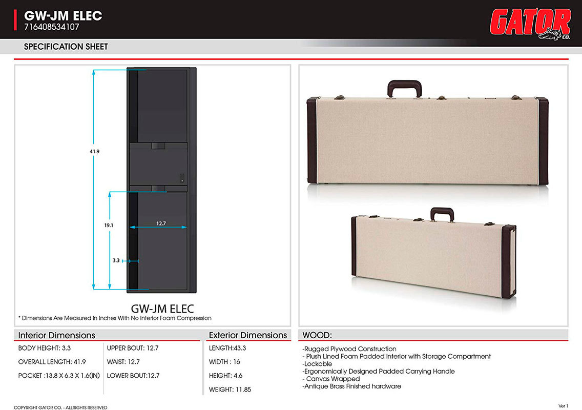 GATOR GW-JM ELEC - деревянный кейс для электрогитары, класс "делюкс"