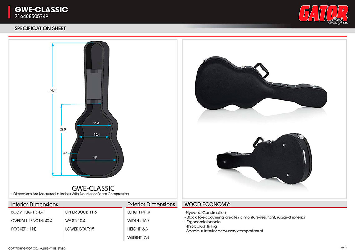 GATOR GWE-CLASSIC - деревянный кейс для классической гитары, класс "эконом"