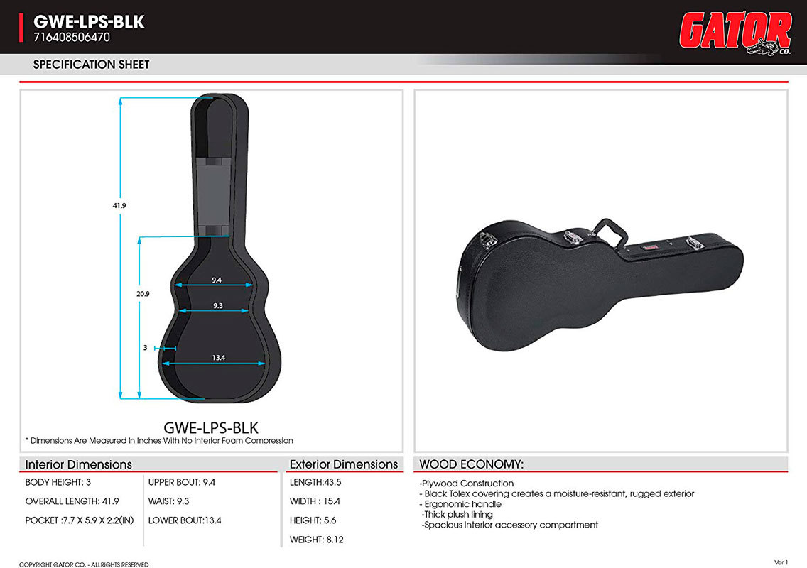 GATOR GWE-LPS-BLK - деревянный кейс для Лес Пол гитары, класс "эконом"