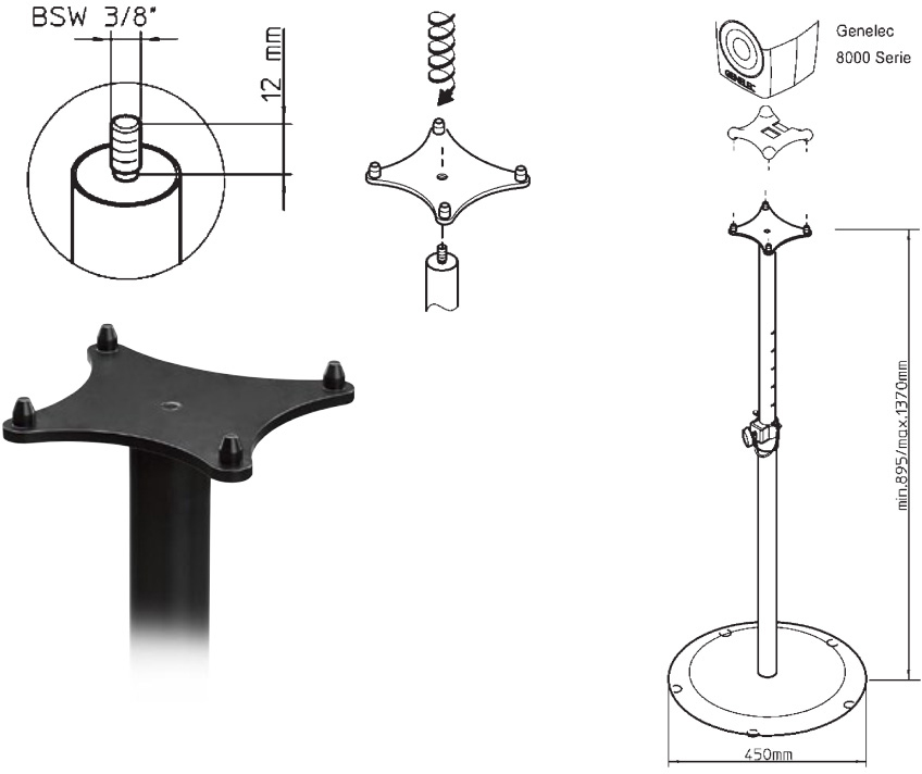 Genelec 8000-403 напольная стойка для мониторов 8010-8030, 8320-8330, 8331, 4020, 4030.