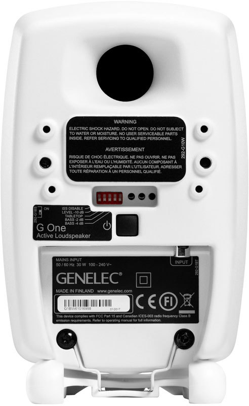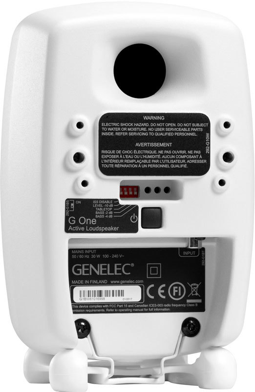 Genelec G One BW активная 2-полосная акустическая система. НЧ 3'' 25 Вт, ВЧ 0.75'' 25 Вт. Подставки. Вход: аналог. RCA. Макс. SPL 96 дБ, 67 Гц - 25 кГц (-6 дБ). Кроссовер 3000 Гц. Габариты (ВхШхГ): 195х121х115 мм (с подставками). Вес 1.7 кг. Белая