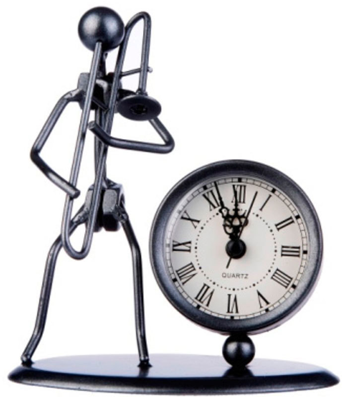 GEWA Sculpture Clock Trombone часы-скульптура сувенирные тромбонист, металл, 12x6,5x13 см