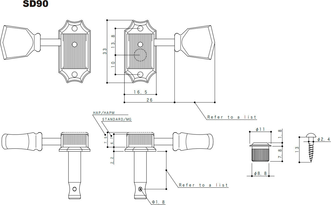 Система H.A.P-M сочетает в себе преимущества системы регулировки длины вала H.A.P с механизмом блокировки Magnum Lock. Колки 1-3 имеют уменьшенный диаметр отверстия 1,2мм, что способствует лучшей фиксации первых струн. На гитарах с небольшим углом наклона головки грифа возможно получить правильный угол струны простой калибровкой длины вала колка. Кроме того, система позволяет отказаться от использования ритейнеров, увеличив при этом стабильность настройки.