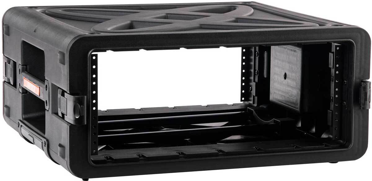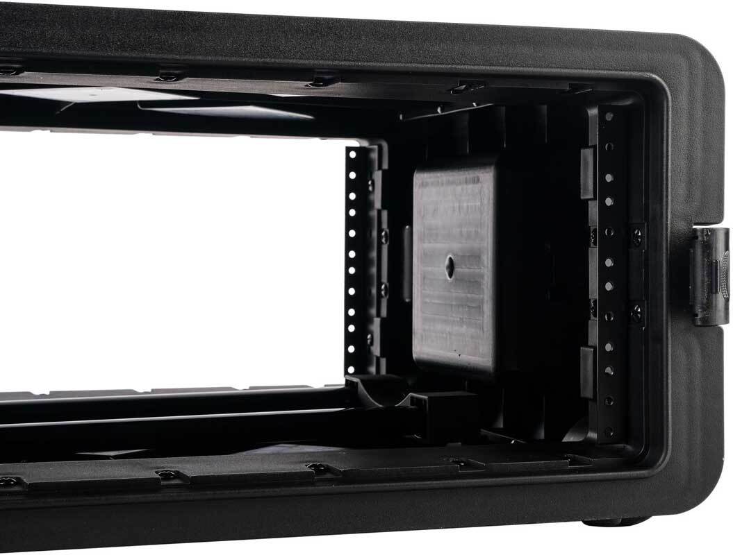 Этот кейс имеет удобную легкую конструкцию, идеально подходящую для авиаперевозок. Он оснащен передними и задними стальными направляющими, прокладками крышек и утопленными стальными поворотными защелками. Внутри кейса предусмотрено место для оборудования размером 19" 4U.