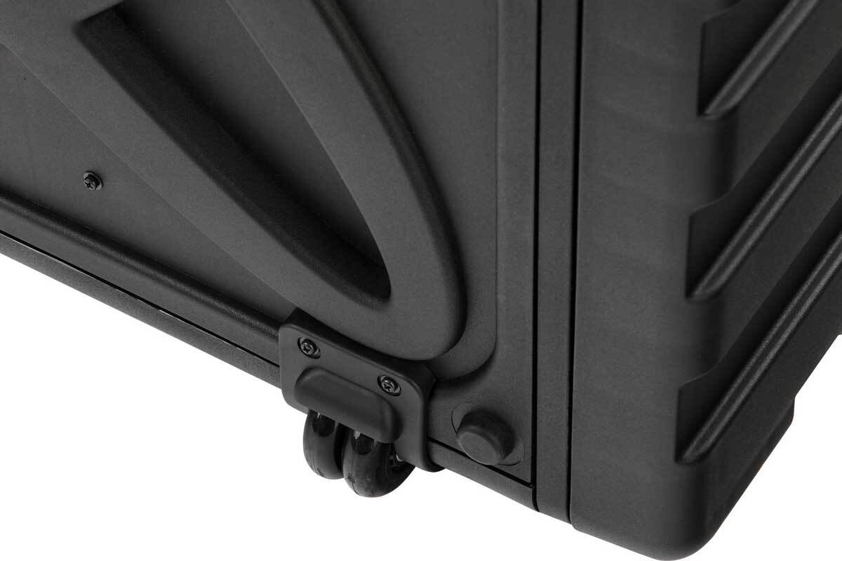 Габариты кейса составляют 61x57x36 см, что обеспечивает достаточно места для установки рекового оборудования высотой до 6U. Такая компактность делает кейс удобным для размещения в ограниченных пространствах, а его размеры идеально подходят для стандартного рекового оборудования 19 дюймов.
