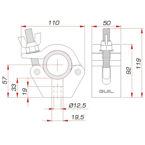 GUIL ABZ-24 - алюминиевая струбцина с высокой степенью безопасности, надёжности и долговечности. Струбцина предназначена для крепления к трубе с наружным диаметром от 45 мм до 52 мм.