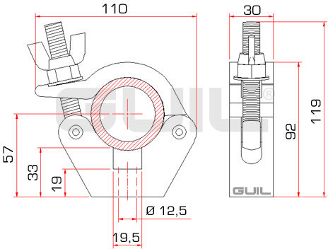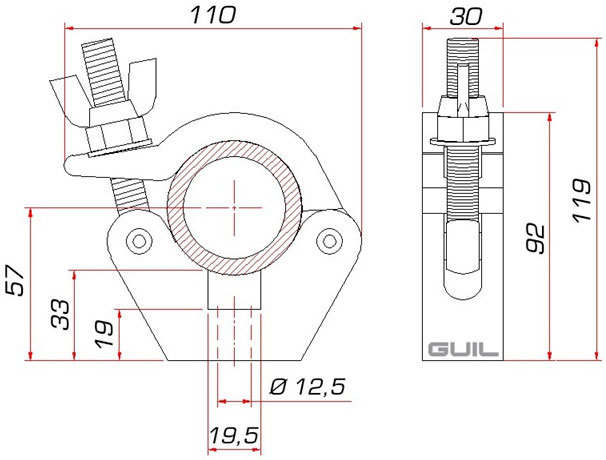GUIL ABZ-29 - алюминиевая струбцина с высокой степенью безопасности, надёжности и долговечности. Предназначена для крепления к трубе с наружным диаметром от 45 мм до 52 мм.