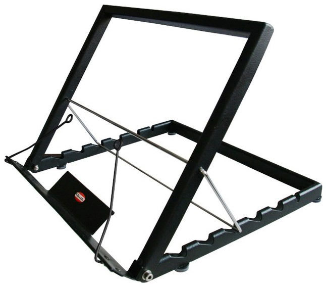 Складывающаяся настольная подставка для нот или книг с зажимами для фиксации страниц. Четыре угла наклона. В комплекте бархатный чехол.