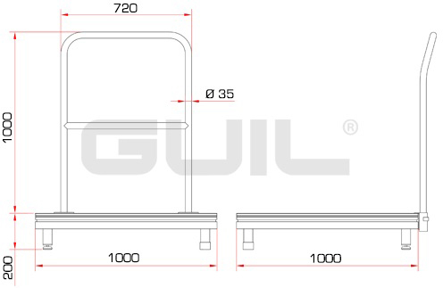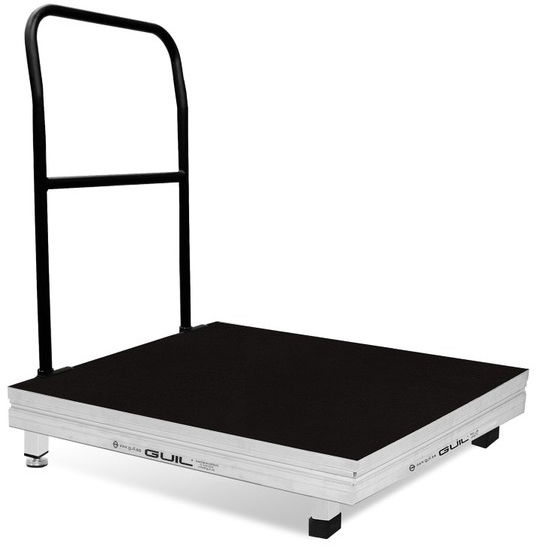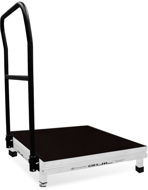 GUIL TMD-09 дирижёрский подиум, 1 х 1 (м), высотой 20 см с поручнем. Одна из ножек имеет винтовую опору для выравнивания подиума на неровной поверхности.