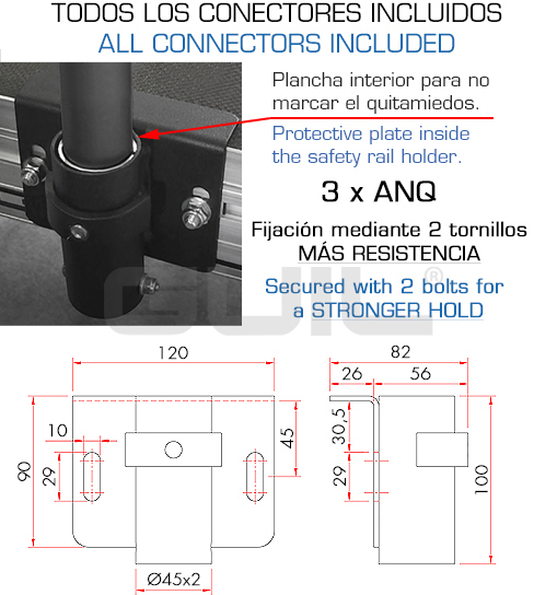 В комплекте соединительные элементы для крепления перил к сценическому станку (ANQ) и перил между собой (TMU-06).