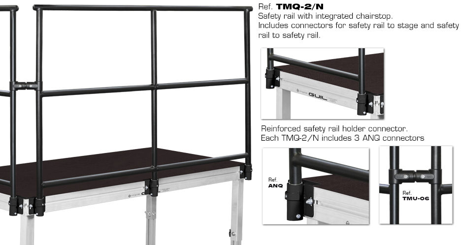 GUIL TMQ-2/N перила страховочные для 2 м стороны сценического станка с дополнительной нижней перемычкой для предотвращения соскальзывания стульев со сцены.