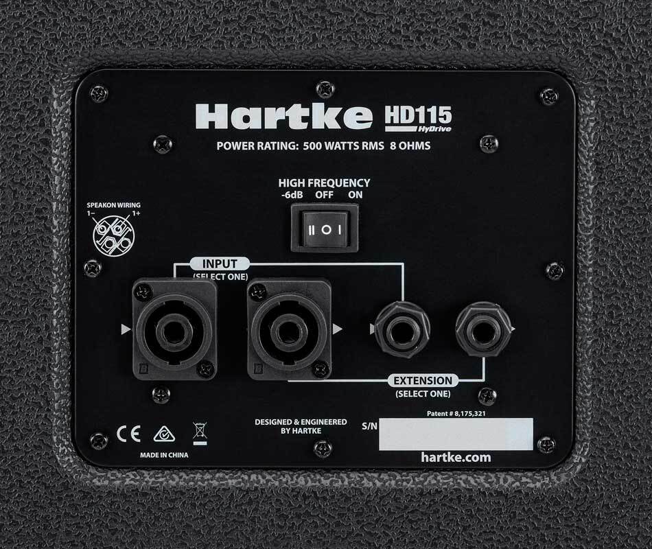 Hartke HyDrive HD115 басовый кабинет 500W/8 ом, 1х15''HyDrive, 1'' компрессионный драйвер, диапазон частот 45-17000 Гц, размеры 618х616х381 мм, вес 23,4 кг