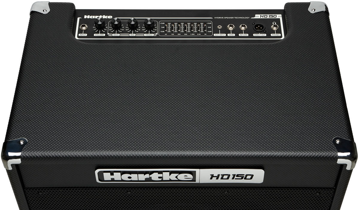 Hartke HD150 - бас-гитарный комбо имеет достаточно мощности, чтобы озвучить любую репетиционную точку или небольшой клуб. Запатентованная технология спикера HyDrive состоит в том, что динамик сделан гибридным: конусный басовый динамик сочетает в себе бумажную и алюминиевую части. Соединяя в себе тепло и мягкость бумаги с жёстким и колким алюминием, технология HyDrive воспроизводит звук, который удовлетворит бас-гитариста любого жанра и стиля. Уникальное строение динамика позволило разработчикам добиться большей ясности в самом нижнем диапазоне, стабильного высококачественного и чистого звука, и, как результат, большей итоговой громкости при сохранение надёжной и долговечной работы динамика.
