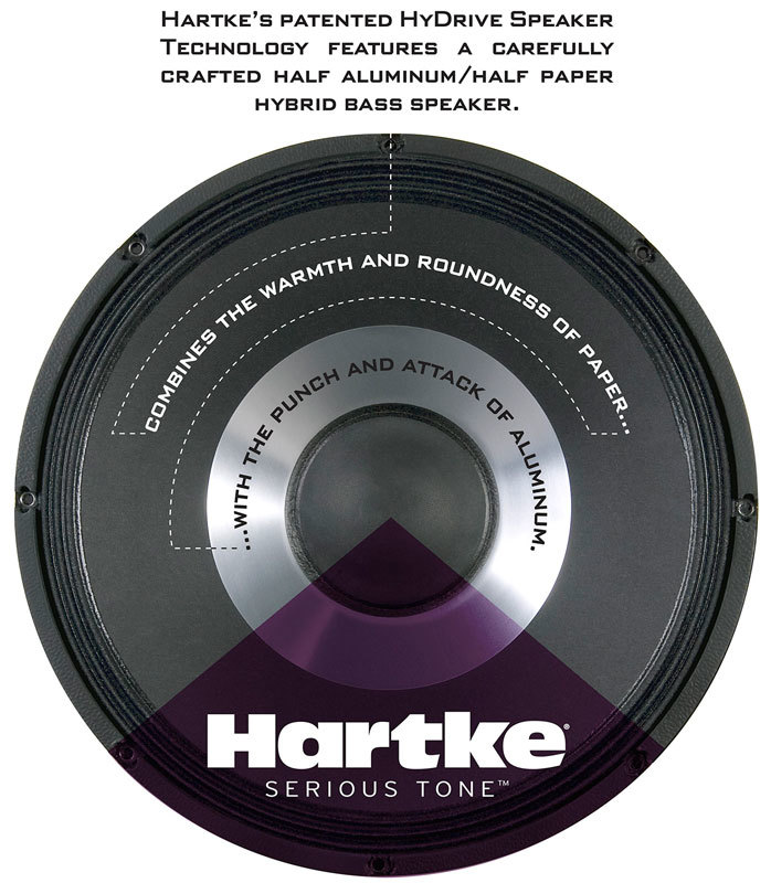 Запатентованная технология спикера HyDrive состоит в том, что динамик сделан гибридным: конусный басовый динамик сочетает в себе бумажную и алюминиевую части. Соединяя в себе тепло и мягкость бумаги с жёстким и колким алюминием, технология HyDrive воспроизводит звук, который удовлетворит бас-гитариста любого жанра и стиля. Уникальное строение динамика позволило разработчикам добиться большей ясности в самом нижнем диапазоне, стабильного высококачественного и чистого звука, и, как результат, большей итоговой громкости при сохранение надёжной и долговечной работы динамика.