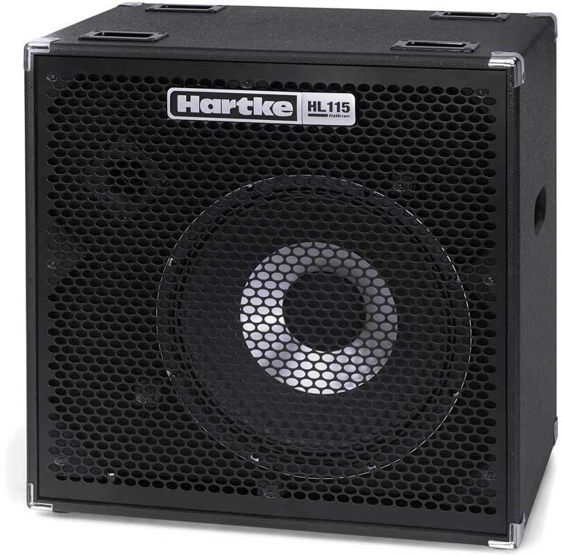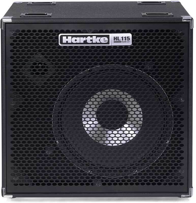 Hartke HyDrive HL115 басовый кабинет 500W/8 ом, 1х15''HyDrive 500W, 1'' компрессионный драйвер, диапазон частот 35-17000 Гц, чувствительность 96dB, размеры 618х618х381 мм, вес 17,8 кг, снимаемые колеса