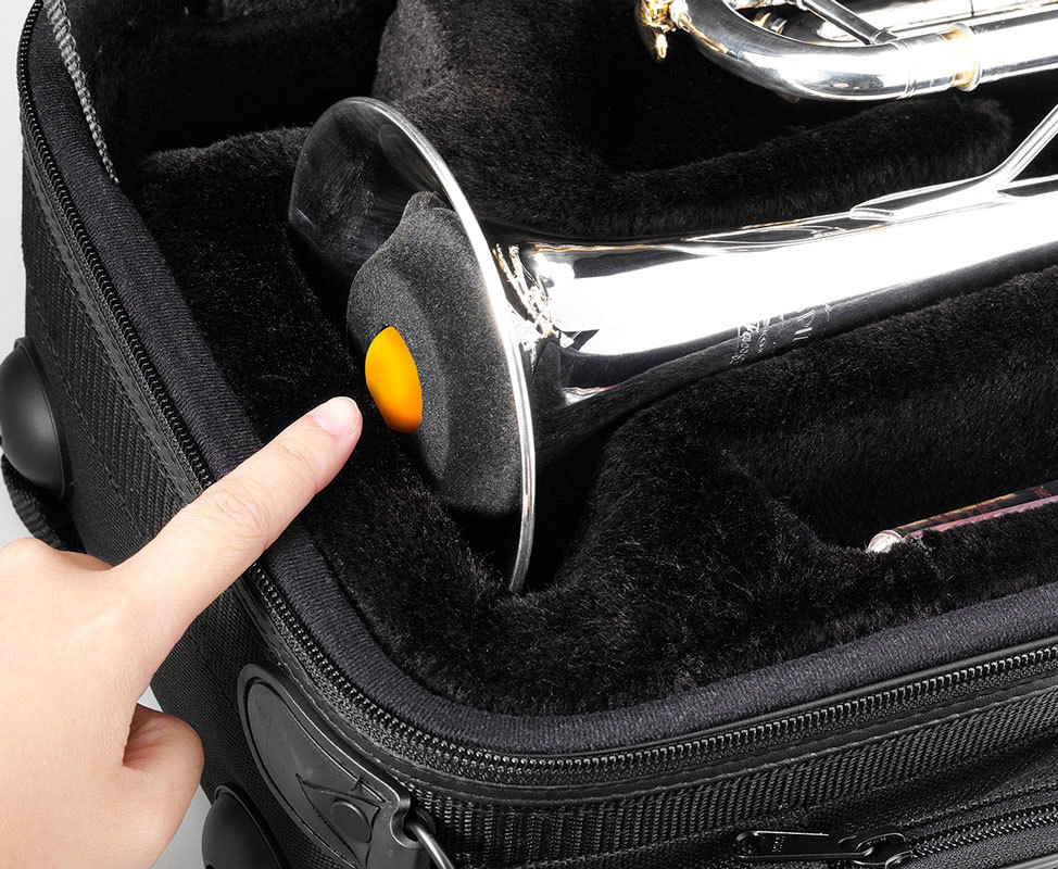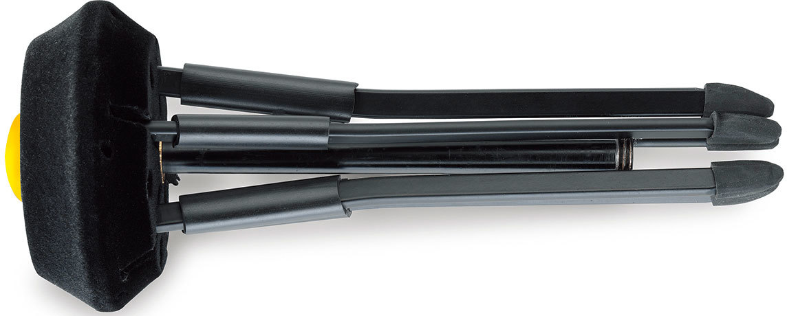 TravLite Trumpet Stand DS410B легко складывается и может прятаться внутри трубы. Вельветовый чехол защищает трубу внутри. Легко раскладывается и стабильно стоит на полу.