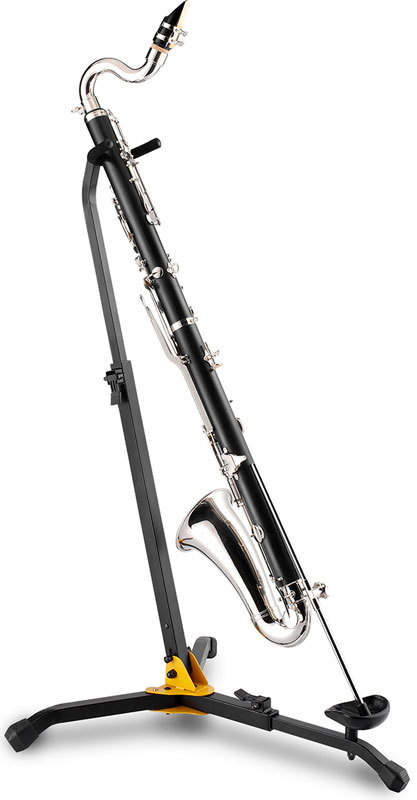 Стойка для Фагота/Басового кларнета. 3-ножная компактная, полностью складывающаямя конструкция для фагота или бас-кларнета. Высокая устойчивость и удобство при транспортировке. Покрытые мягким материалом подпоры инструмента. Телескопическая конструкция штатива и центральной ножки опоры. Отверстие в одной из ножек опоры для установки министойки для другого инструмента