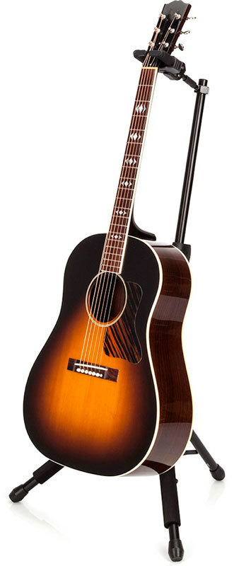 Модернизированная модель Hercules GS415B Plus имеет встроенную автоматическую систему сжатия, которая надежно фиксирует гитару. Механизм AGS срабатывает под весом инструмента. Ручное регулирование позволяет установить высоту стойки быстро, легко и безопасно. SFF материал защищает инструмент от повреждений во всех контактных точках. Модель легко складывается для удобного перемещения.