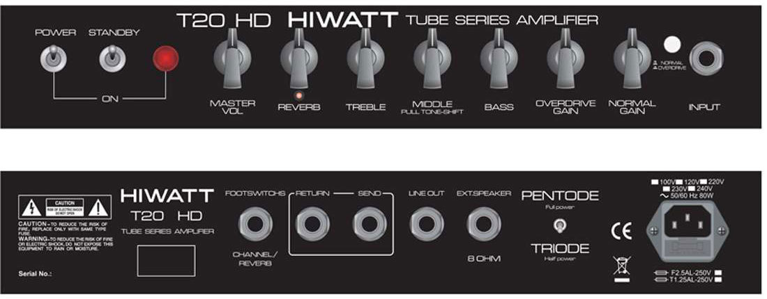 HIWATT T20HD усилитель для электрогитары ламповый, 10/20 Вт, 2x12AX7, 1x12AU7, 2xEL84