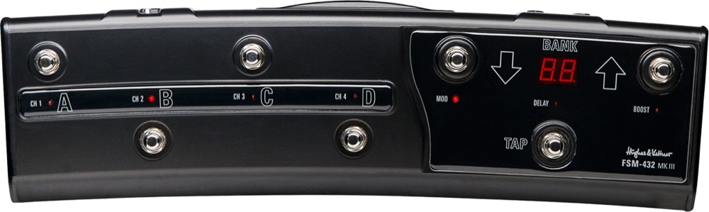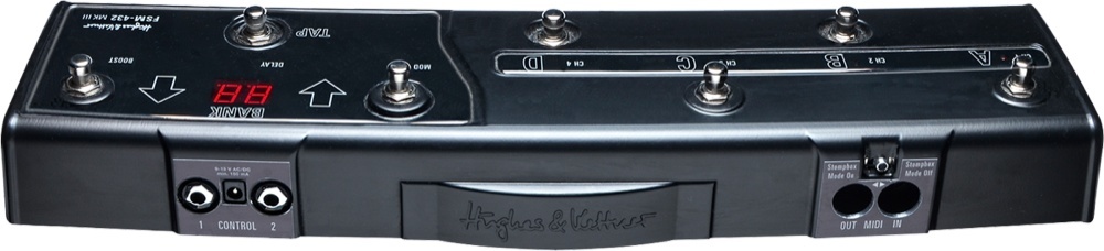 Если купить к этому усилитель дополнительный MIDI футсвитч FSM432 MIDI, все эффекты и праметры можно будет включать ногой. Футсвитч питается по MIDI кабелю от усилителя.
