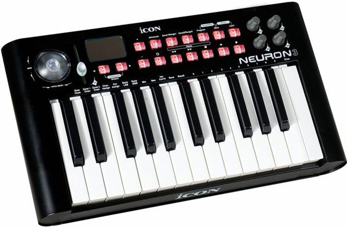 ICON Neuron 3 Black MIDI-клавиатура USB фортепианного типа, 25 клавиш, 4 программируемые кнопки, программируемый фейдер, размеры 430х244х56 мм, вес 3 кг