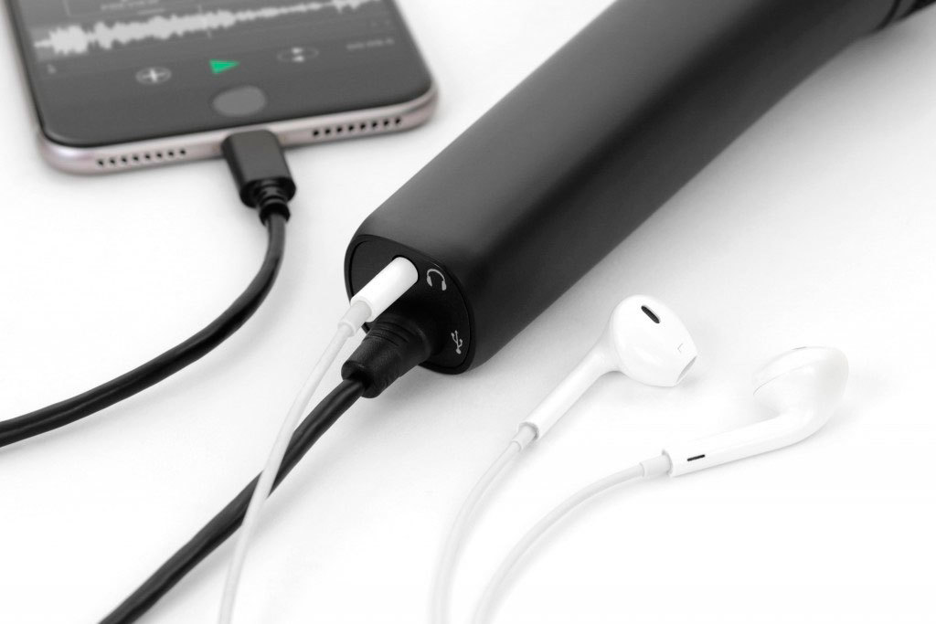iRig Mic HD 2 оснащен выходом для наушников с регулятором громкости, что позволяет пользователям напрямую контролировать звук или отправлять сигнал на акустическую систему или микшер.