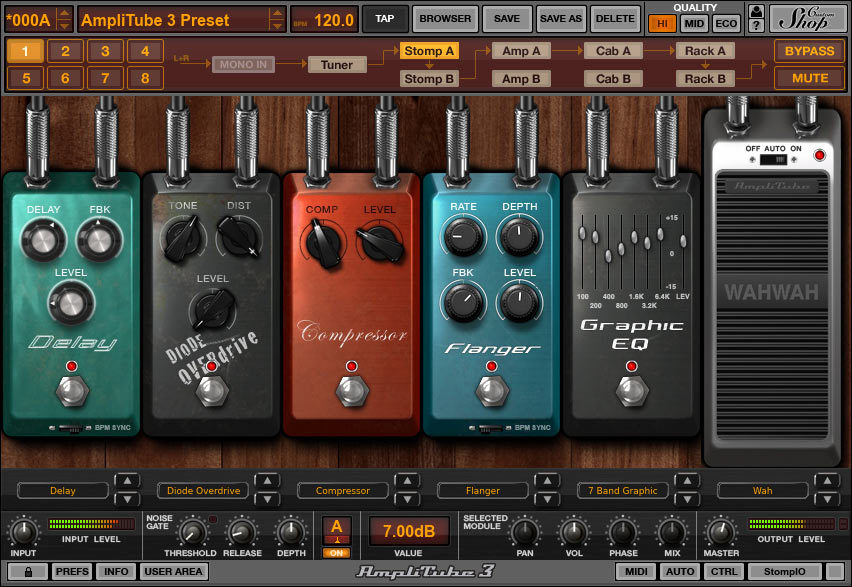 AmpliTube Custom Shop так же работает как плагин для популярных программ-секвенсоров, таких как GarageBand, Pro Tools, Cubase, Sonar, Logic, Live, Reaper, FruityLoops и т.д. с совершенно теми же возможностями, за исключением звукозаписи – ведь находясь в секвенсоре Вы уже закладываете дорожки для треков. Ну и наконец StrealthPedal действительно универсален и подходит и для гитаристов и для басистов.